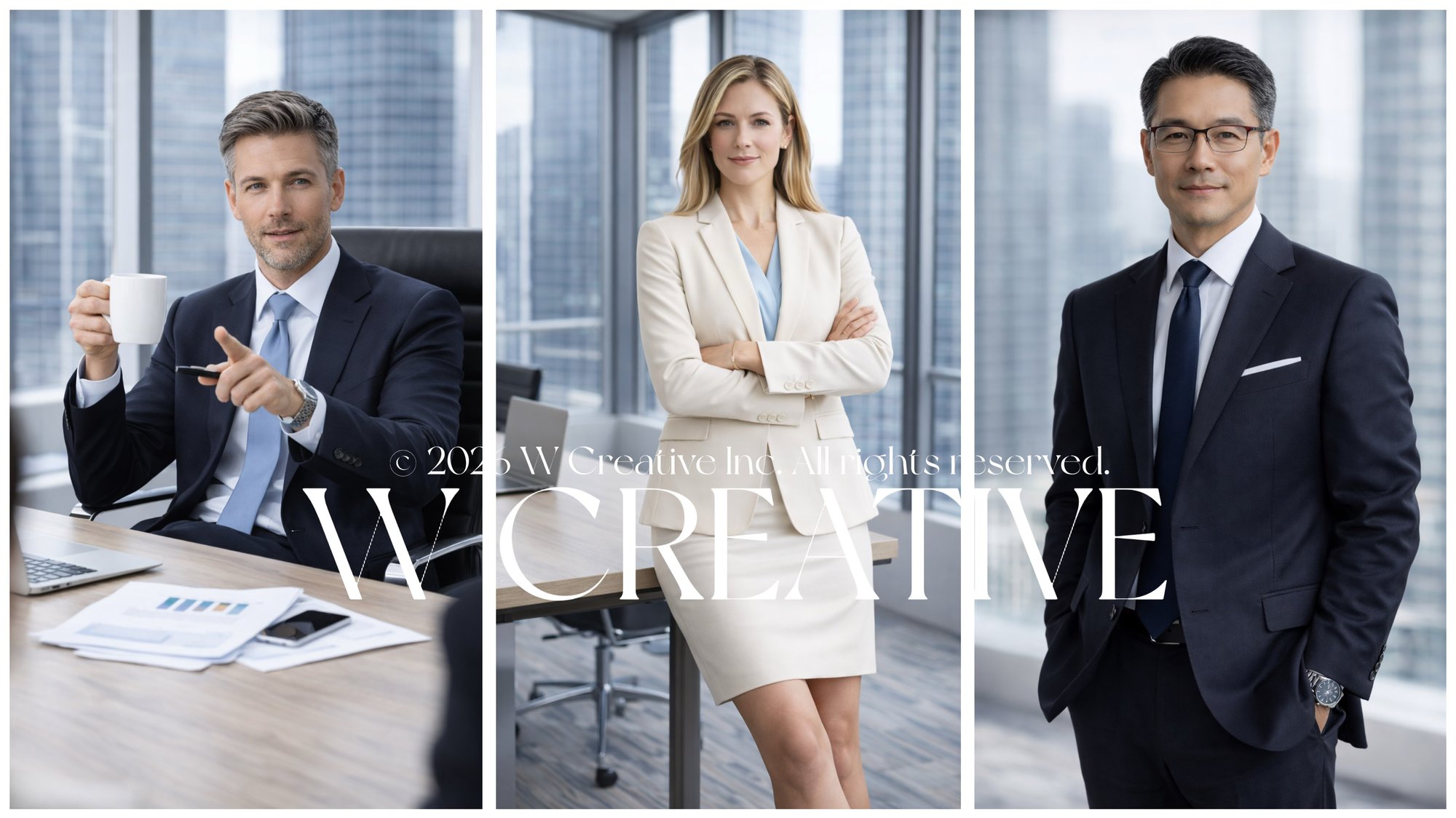 Each image is created with a clean, refined visual approach, focusing on posture, expression, lighting, and overall presence to present a confident and polished professional image.